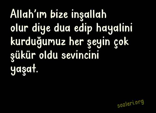 Allah’ım bize inşallah olur diye dua edip hayalini kurduğumuz her şeyin çok şükür oldu sevincini yaşat. ( Şükür )
