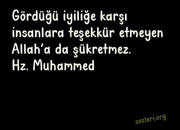 Gördüğü iyiliğe karşı insanlara teşekkür etmeyen Allah’a da şükretmez. Hz. Muhammed ( Şükür )
