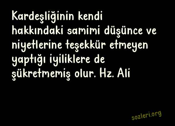 Kardeşliğinin kendi hakkındaki samimi düşünce ve niyetlerine teşekkür etmeyen yaptığı iyiliklere de şükretmemiş olur. Hz. Ali ( Şükür )