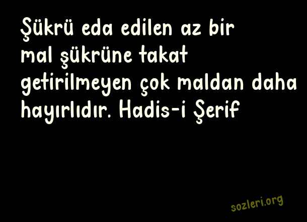 Şükrü eda edilen az bir mal şükrüne takat getirilmeyen çok maldan daha hayırlıdır. Hadis-i Şerif ( Şükür )