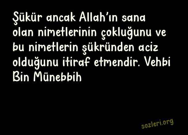 Şükür ancak Allah’ın sana olan nimetlerinin çokluğunu ve bu nimetlerin şükründen aciz olduğunu itiraf etmendir. Vehbi Bin Münebbih ( Şükür )