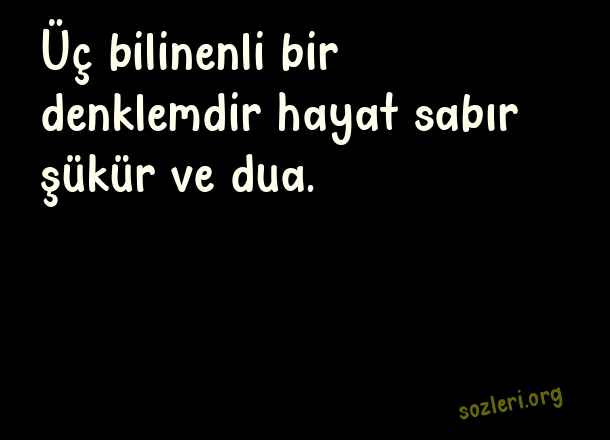 Üç bilinenli bir - Şükür İle İlgili Sözler .. Üç bilinenli bir denklemdir hayat sabır şükür ve dua. ( Şükür )