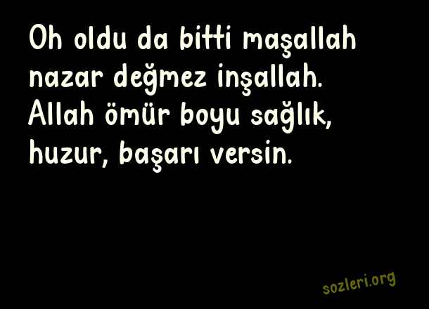 Oh oldu da bitti maşallah nazar değmez inşallah. Allah ömür boyu sağlık, huzur, başarı versin. ( Sünnet Kutlama )