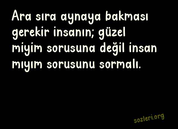 Ara sıra aynaya bakması gerekir insanın; güzel miyim sorusuna değil insan mıyım sorusunu sormalı. ( Susturucu Anlamlı Kapak Sözler )