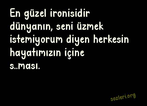 En güzel ironisidir dünyanın, seni üzmek istemiyorum diyen herkesin hayatımızın içine s..ması. ( Susturucu Anlamlı Kapak Sözler )