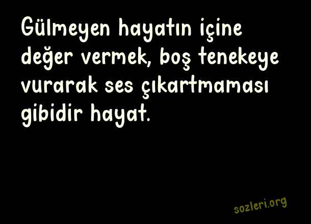 Gülmeyen hayatın içine değer vermek, boş tenekeye vurarak ses çıkartmaması gibidir hayat. ( Susturucu Anlamlı Kapak Sözler )