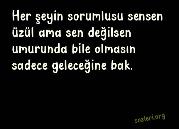 Her şeyin sorumlusu sensen üzül ama sen değilsen umurunda bile olmasın sadece geleceğine bak. ( Susturucu Anlamlı Kapak Sözler )