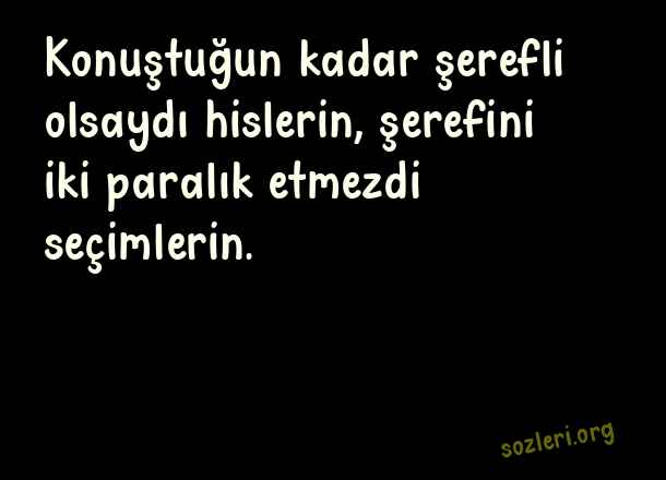 Konuştuğun kadar şerefli olsaydı hislerin, şerefini iki paralık etmezdi seçimlerin. ( Susturucu Anlamlı Kapak Sözler )