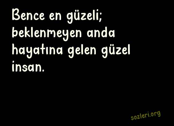 Bence en güzeli; beklenmeyen anda hayatına gelen güzel insan. ( Tarz Sözler )