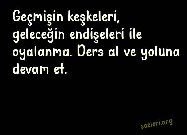 Geçmişin keşkeleri, geleceğin endişeleri ile oyalanma. Ders al ve yoluna devam et. ( Tarz Sözler )