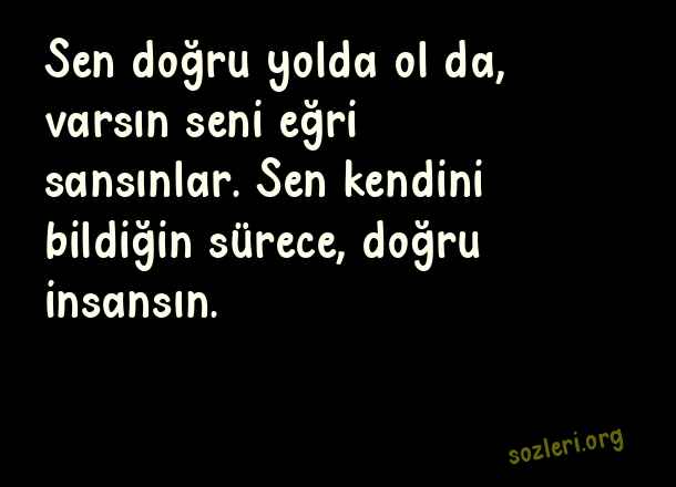 Sen doğru yolda ol da, varsın seni eğri sansınlar. Sen kendini bildiğin sürece, doğru insansın. ( Tarz Sözler )