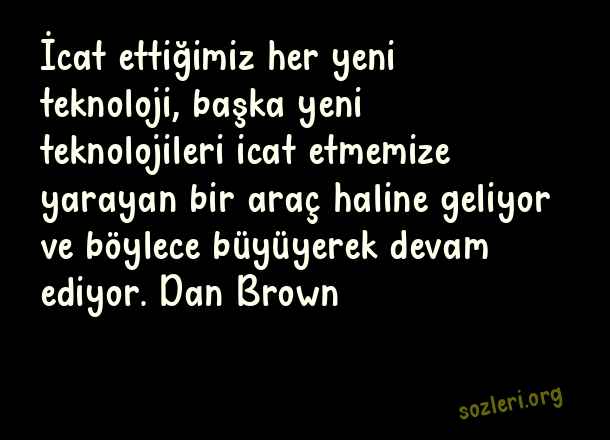 İcat ettiğimiz her yeni teknoloji, başka yeni teknolojileri icat etmemize yarayan bir araç haline geliyor ve böylece büyüyerek devam ediyor. Dan Brown ( Teknoloji )