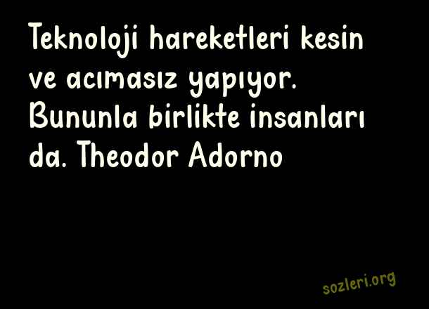 Teknoloji hareketleri kesin ve acımasız yapıyor. Bununla birlikte insanları da. Theodor Adorno ( Teknoloji )