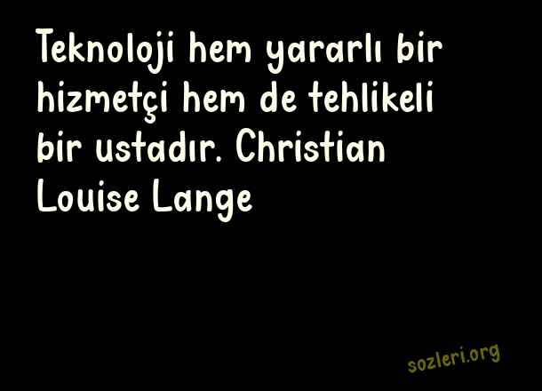 Teknoloji hem yararlı bir hizmetçi hem de tehlikeli bir ustadır. Christian Louise Lange ( Teknoloji )