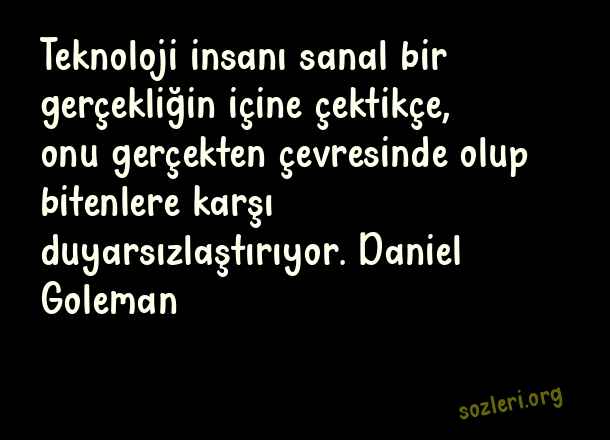 Teknoloji insanı sanal bir gerçekliğin içine çektikçe, onu gerçekten çevresinde olup bitenlere karşı duyarsızlaştırıyor. Daniel Goleman ( Teknoloji )