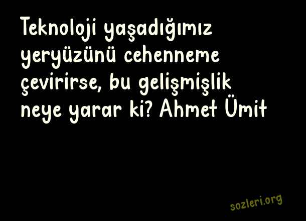 Teknoloji yaşadığımız yeryüzünü cehenneme çevirirse, bu gelişmişlik neye yarar ki? Ahmet Ümit ( Teknoloji )