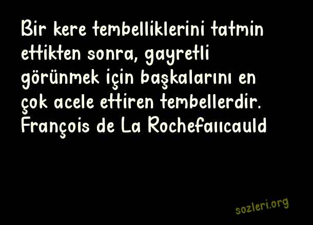 Bir kere tembelliklerini tatmin ettikten sonra, gayretli görünmek için başkalarını en çok acele ettiren tembellerdir. François de La Rochefaııcauld ( Tembellik )