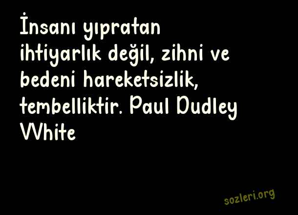 İnsanı yıpratan ihtiyarlık değil, zihni ve bedeni hareketsizlik, tembelliktir. Paul Dudley VVhite ( Tembellik )