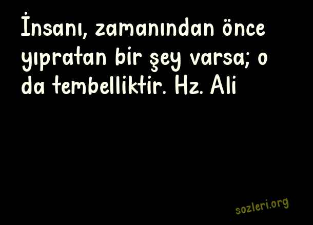 İnsanı, zamanından önce yıpratan bir şey varsa; o da tembelliktir. Hz. Ali ( Tembellik )