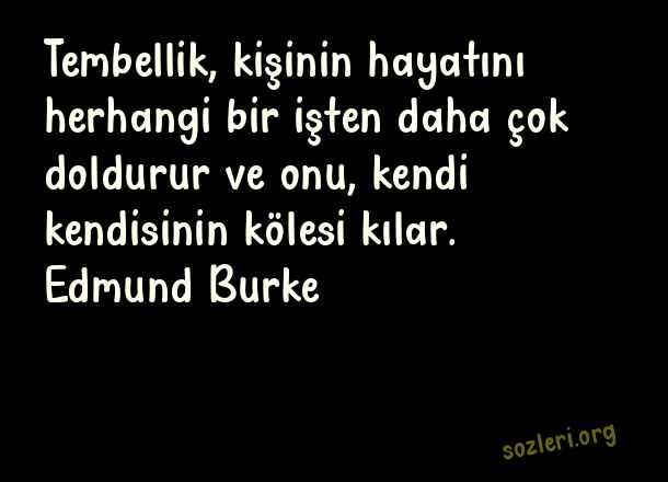 Tembellik, kişinin hayatını herhangi bir işten daha çok doldurur ve onu, kendi kendisinin kölesi kılar. Edmund Burke ( Tembellik )