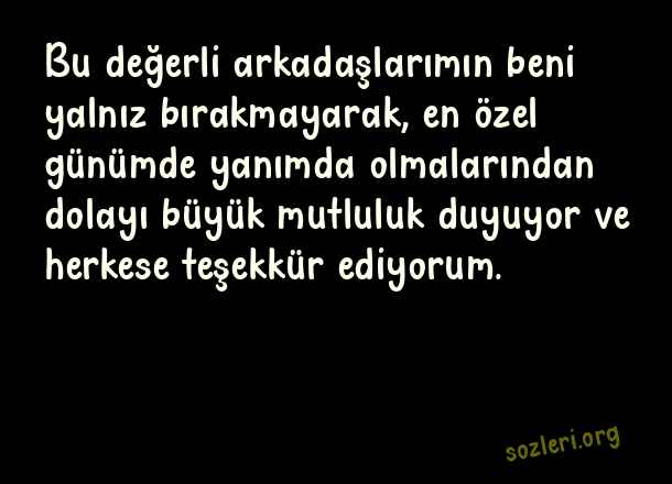 Bu değerli arkadaşlarımın beni yalnız bırakmayarak, en özel günümde yanımda olmalarından dolayı büyük mutluluk duyuyor ve herkese teşekkür ediyorum. ( Teşekkür )