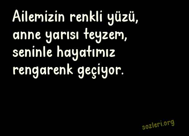 Ailemizin renkli yüzü, anne yarısı teyzem, seninle hayatımız rengarenk geçiyor. ( Teyze )