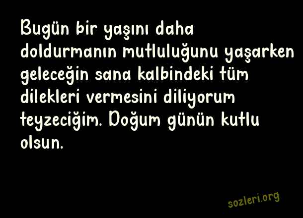 Bugün bir yaşını daha doldurmanın mutluluğunu yaşarken geleceğin sana kalbindeki tüm dilekleri vermesini diliyorum teyzeciğim. Doğum günün kutlu olsun. ( Teyzeme Doğum Günü )
