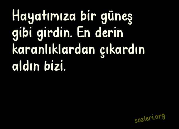 Hayatımıza bir güneş gibi girdin. En derin karanlıklardan çıkardın aldın bizi. ( Teyze )