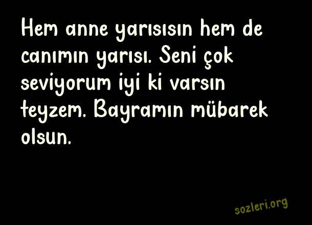Hem anne yarısısın hem de canımın yarısı. Seni çok seviyorum iyi ki varsın teyzem. Bayramın mübarek olsun. ( Teyzeye Bayram )