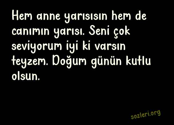 Hem anne yarısısın hem de canımın yarısı. Seni çok seviyorum iyi ki varsın teyzem. Doğum günün kutlu olsun. ( Teyzeme Doğum Günü )
