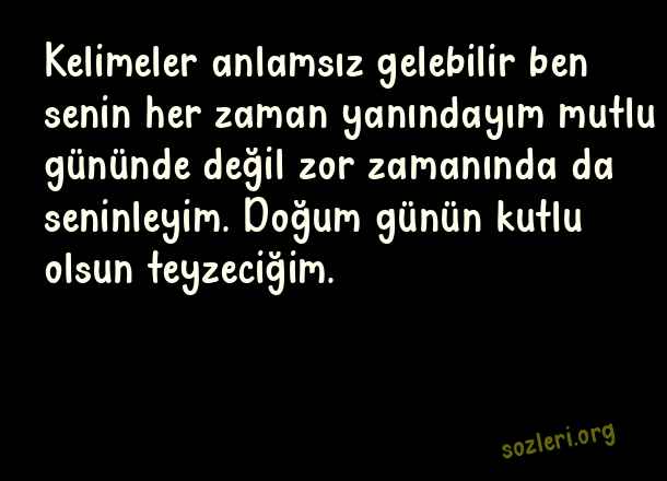 Kelimeler anlamsız gelebilir ben senin her zaman yanındayım mutlu gününde değil zor zamanında da seninleyim. Doğum günün kutlu olsun teyzeciğim. ( Teyzeme Doğum Günü )