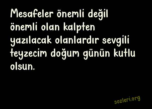 Mesafeler önemli değil önemli olan kalpten yazılacak olanlardır sevgili teyzecim doğum günün kutlu olsun. ( Teyzeme Doğum Günü )