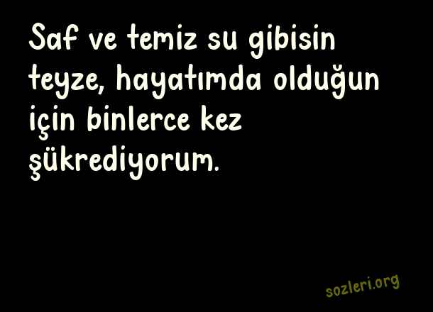 Saf ve temiz - Teyze İle İlgili Sözler .. Saf ve temiz su gibisin teyze, hayatımda olduğun için binlerce kez şükrediyorum. ( Teyze )