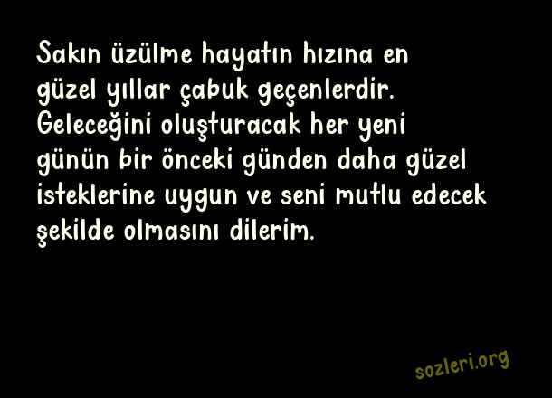 Sakın üzülme hayatın hızına en güzel yıllar çabuk geçenlerdir. Geleceğini oluşturacak her yeni günün bir önceki günden daha güzel isteklerine uygun ve seni mutlu edecek şekilde olmasını dilerim. ( Teyzeme Doğum Günü )