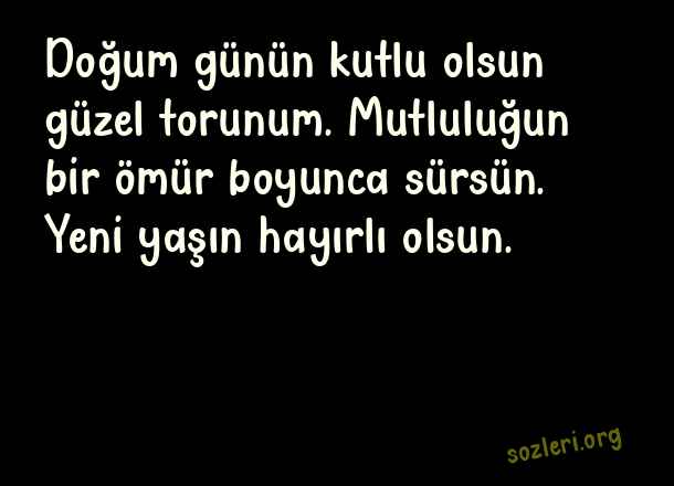Doğum günün kutlu olsun güzel torunum. Mutluluğun bir ömür boyunca sürsün. Yeni yaşın hayırlı olsun. ( Toruna Doğum Günü )