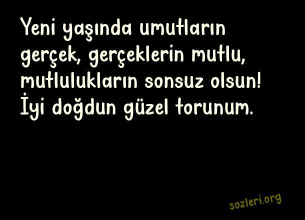 Yeni yaşında umutların gerçek, gerçeklerin mutlu, mutlulukların sonsuz olsun! İyi doğdun güzel torunum. ( Toruna Doğum Günü )