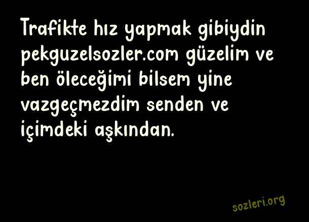Trafikte hız yapmak gibiydin güzelim ve ben öleceğimi bilsem yine vazgeçmezdim senden ve içimdeki aşkından. ( Trafik )