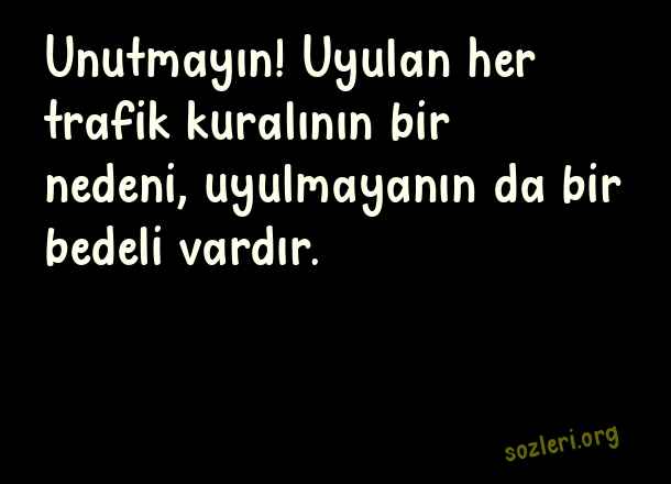 Unutmayın! Uyulan her trafik kuralının bir nedeni, uyulmayanın da bir bedeli vardır. ( Trafik )
