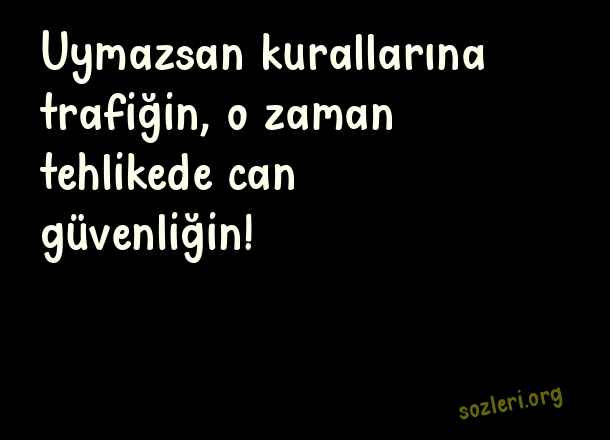 Uymazsan kurallarına trafiğin, - Trafik İle İlgili Sözler .. Uymazsan kurallarına trafiğin, o zaman tehlikede can güvenliğin! ( Trafik )