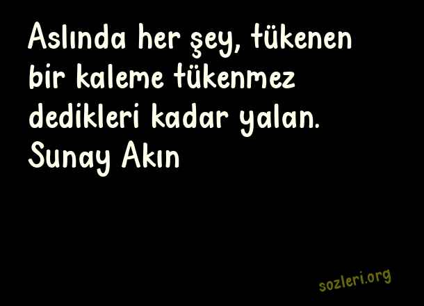 Aslında her şey, tükenen bir kaleme tükenmez dedikleri kadar yalan. Sunay Akın ( Tükenmek )