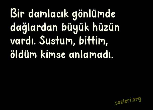 Bir damlacık gönlümde dağlardan büyük hüzün vardı. Sustum, bittim, öldüm kimse anlamadı. ( Tükenmek )