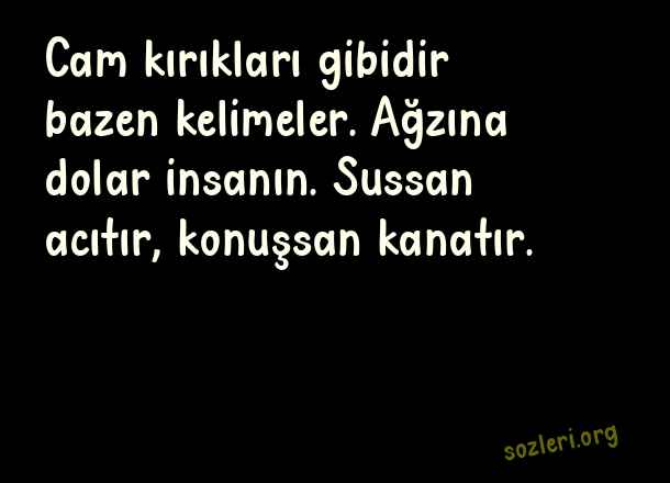 Cam kırıkları gibidir bazen kelimeler. Ağzına dolar insanın. Sussan acıtır, konuşsan kanatır. ( Tükenmek )