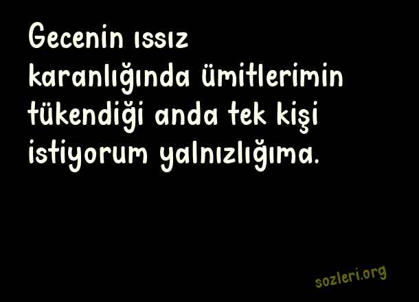 Gecenin ıssız karanlığında ümitlerimin tükendiği anda tek kişi istiyorum yalnızlığıma. ( Tükenmek )