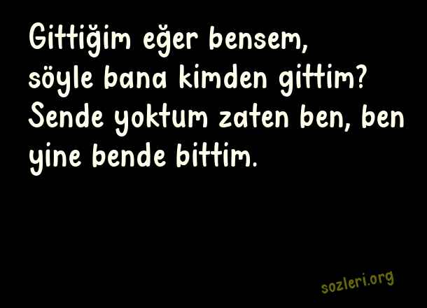 Gittiğim eğer bensem, söyle bana kimden gittim? Sende yoktum zaten ben, ben yine bende bittim. ( Tükenmek )