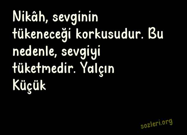 Nikâh, sevginin tükeneceği korkusudur. Bu nedenle, sevgiyi tüketmedir. Yalçın Küçük ( Tükenmek )