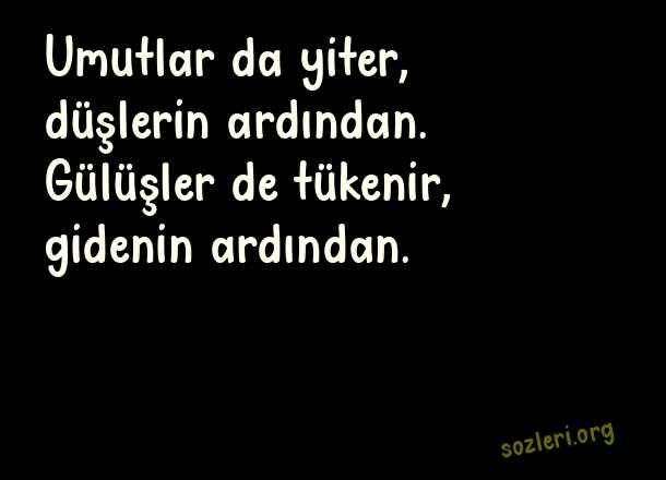 Umutlar da yiter, düşlerin ardından. Gülüşler de tükenir, gidenin ardından. ( Tükenmek )