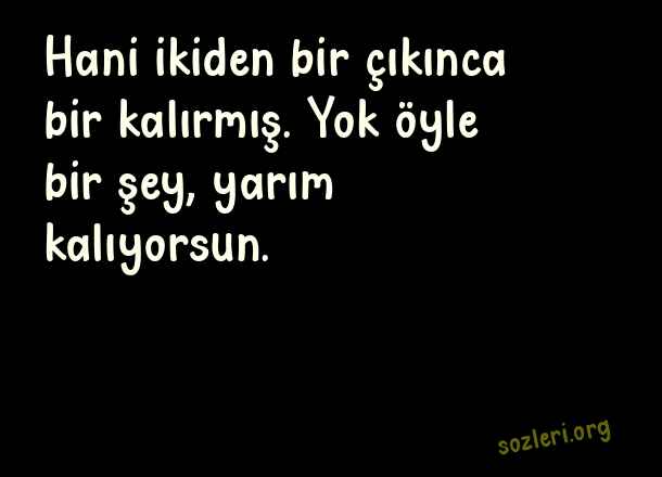 Hani ikiden bir çıkınca bir kalırmış. Yok öyle bir şey, yarım kalıyorsun. ( Tumblr Aşk )