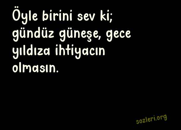 Öyle birini sev ki; gündüz güneşe, gece yıldıza ihtiyacın olmasın. ( Tumblr Aşk )