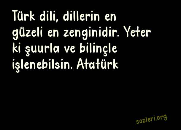 Türk dili, dillerin en güzeli en zenginidir. Yeter ki şuurla ve bilinçle işlenebilsin. Atatürk ( Türkçe )