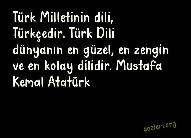 Türk Milletinin dili, Türkçedir. Türk Dili dünyanın en güzel, en zengin ve en kolay dilidir. Mustafa Kemal Atatürk ( Türkçe )